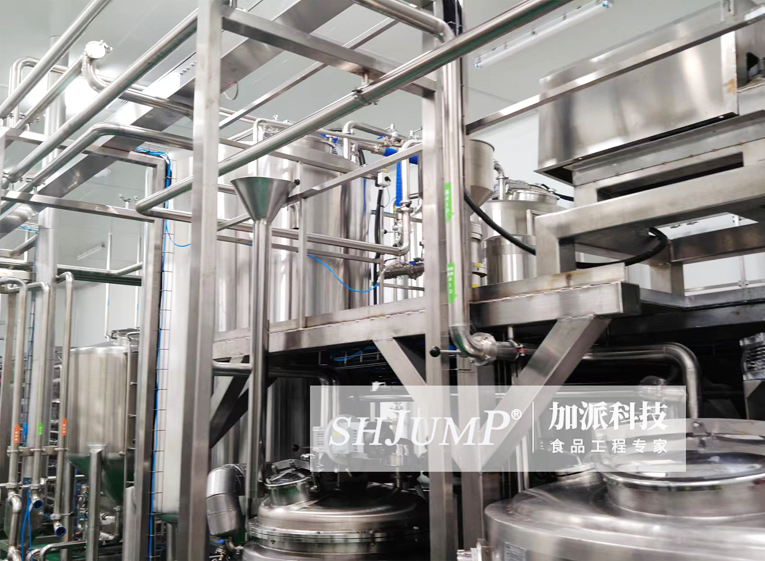 生产线用于食品饮料调配,速冻水果处理 下图为设备客户现场